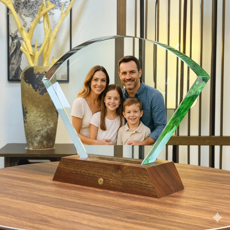 Displayed on an Electric Wooden LED Base or Crystal LED Base, it becomes an illuminated memory — elegant, emotional, and unforgettable.