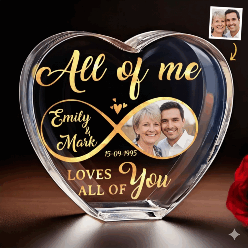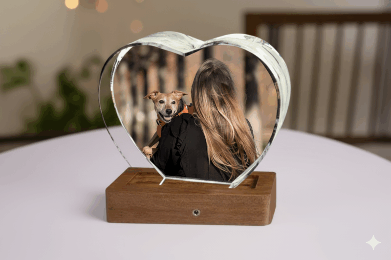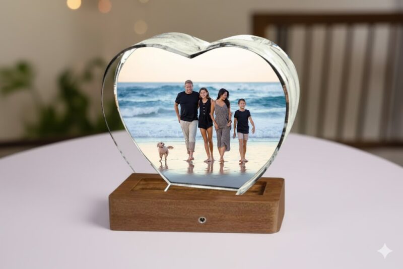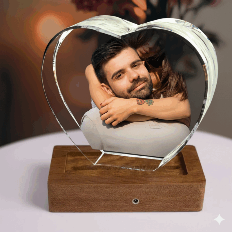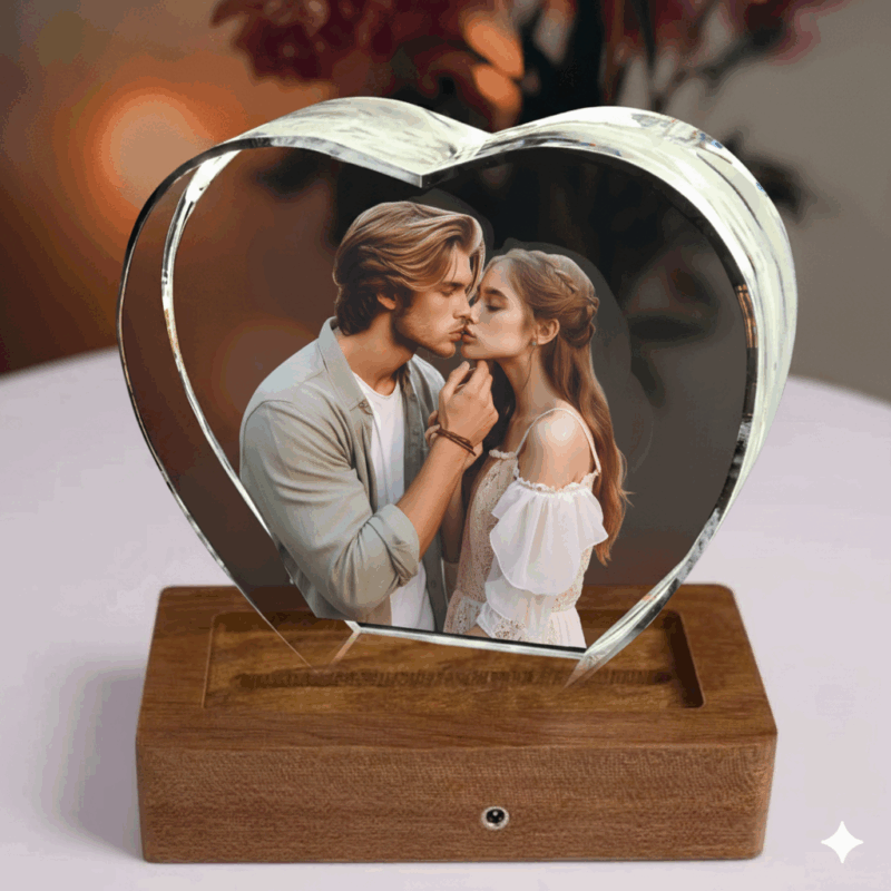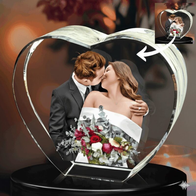 Capture your love inside a heart crystal — laser-engraved photo art that radiates romance.