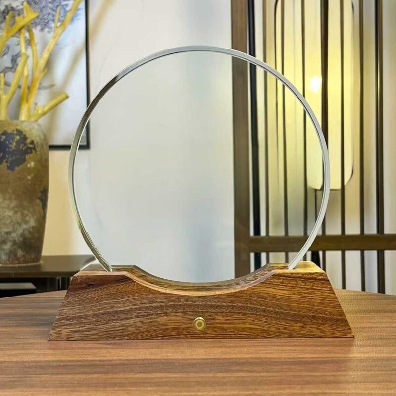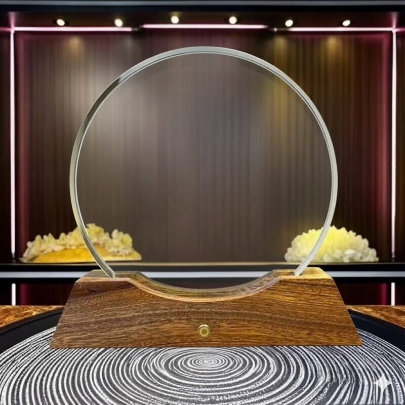 Choose from sleek designs like Square, Round, or Fan-shaped crystals, each paired with your choice of Crystal LED Base or Electric Wooden LED Base for a refined, masculine display.