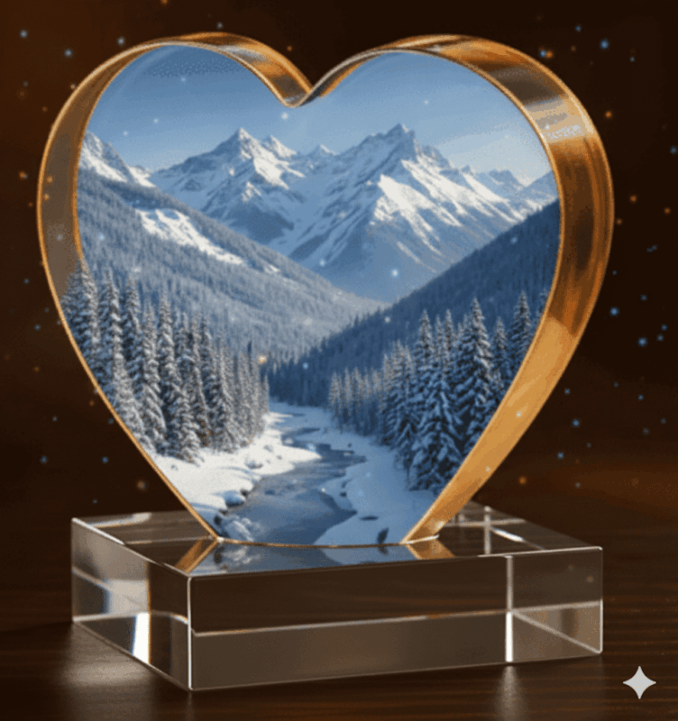 Celebrate love and connection with our Heart-Shaped Crystal Engraving — a timeless keepsake that preserves your most meaningful memories in luminous 3D detail.