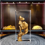 Silence is Golden Crystal Engraving – 3D Square Crystal